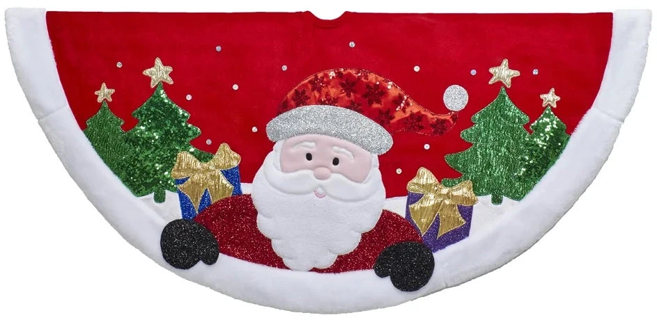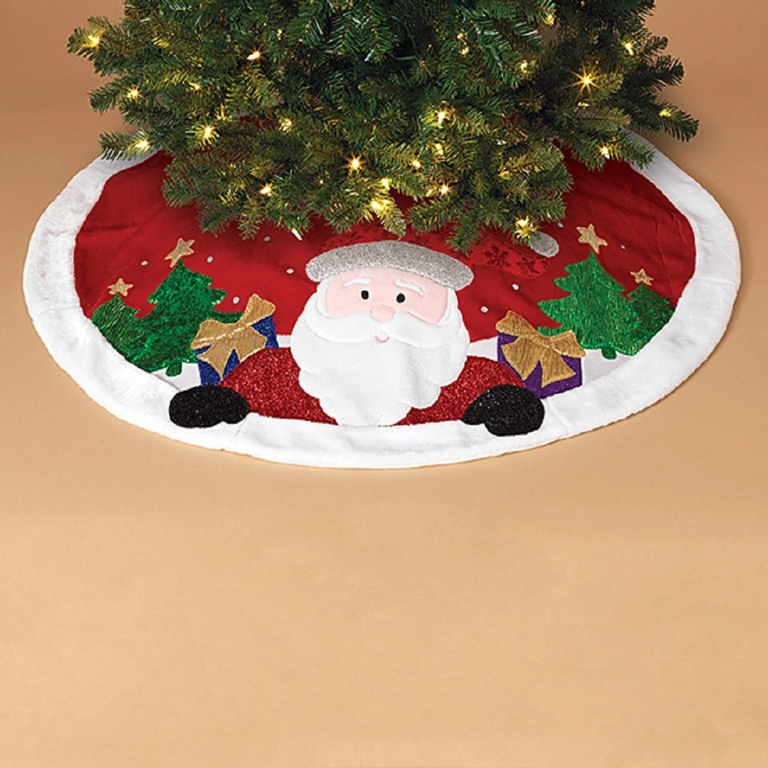You and your family will love seeing this wonderful wintertime 48″ Red Velvet Metallic Embroidered Santa Christmas Tree Skirt with Faux Fur Border underneath your Christmas tree all season long.