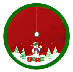 You and your family will love seeing this wonderful wintertime Red Velvet Metallic Embroidered Snowman Christmas Tree Skirt with Faux Fur Border underneath your Christmas tree all season long.