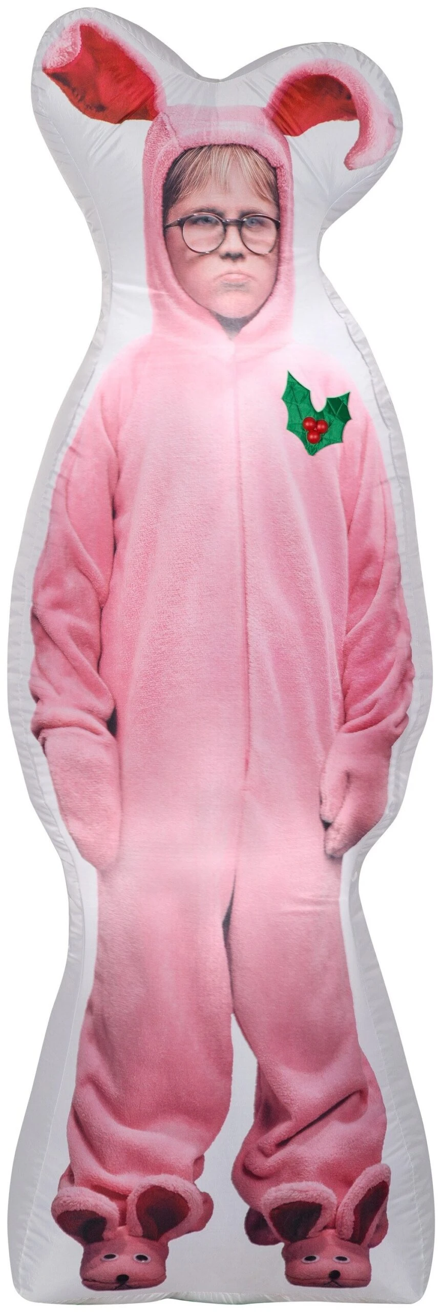 Deck the yard with an Airblown® A Christmas Story Inflatable! This unique holiday inflatable features a photorealistic image of the beloved character, Ralphie, begrudgingly wearing that famous pink bunny suit.