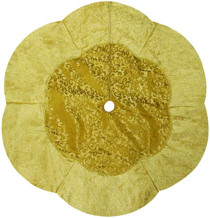 Spruce up your Christmas tree this season with this beautiful 60″ Damask Gold Glitter Velvet Christmas Tree Skirt. The gold velvet of this tree skirt is a perfect complement and addition to your Christmas décor. The sparkling lights of your tree will be illuminated and reflected in the glitter of this tree skirt! Imagine the delight on Christmas morning after Santa visits and piles the gifts on this skirt!