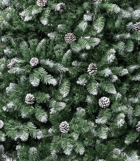 - Trimmed with frosted tips and pine cones